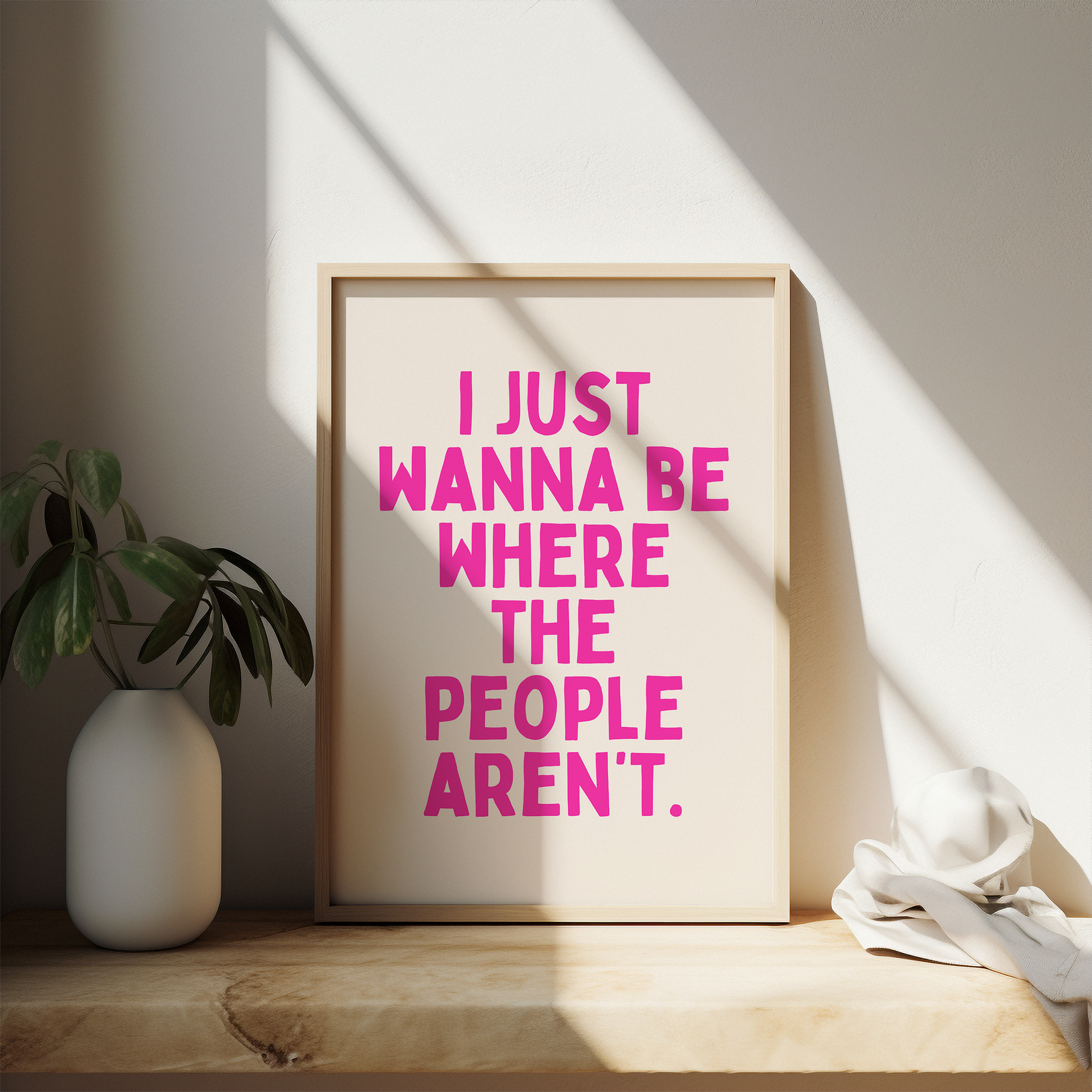 I Just Wanna Be Where The People Aren't | Hot Pink and Cream | Art Print