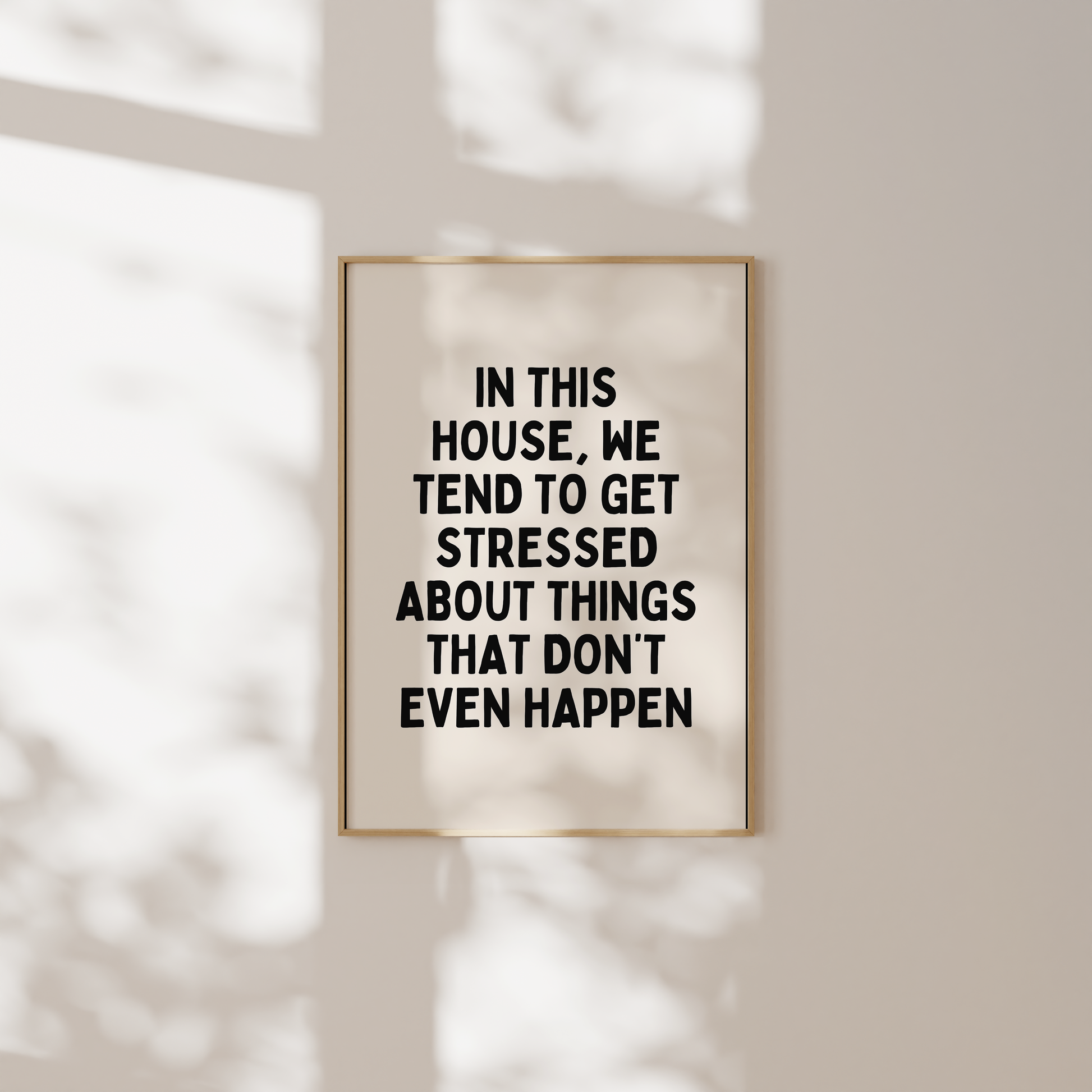 In This House, We Tend To Get Stressed | Black & Cream | Art Print