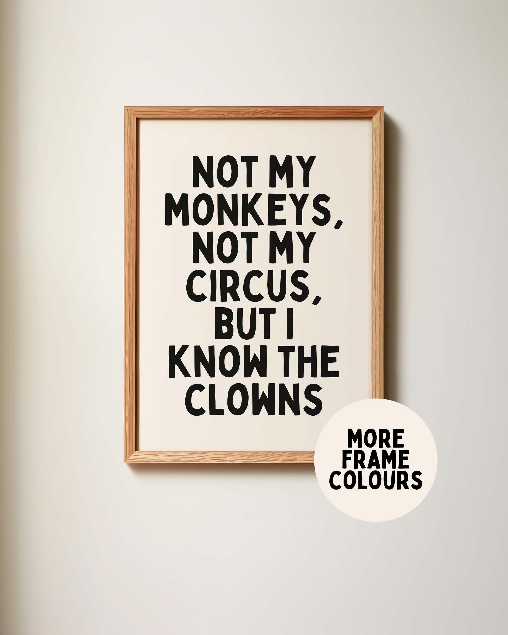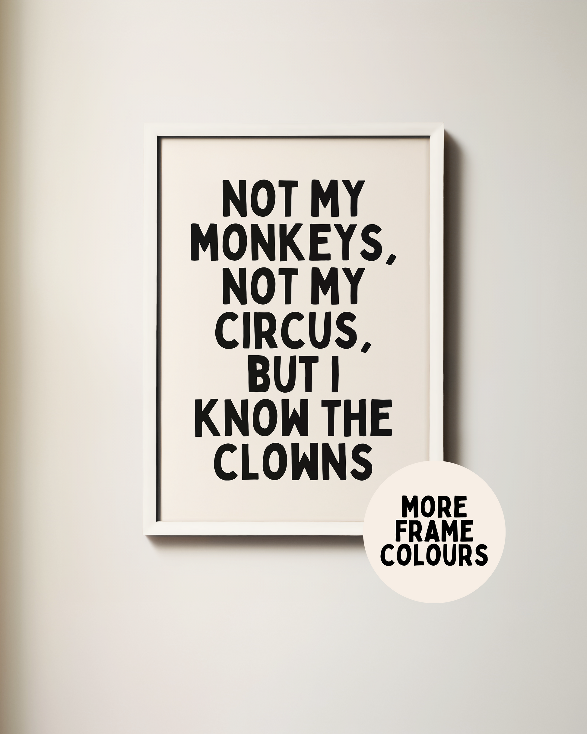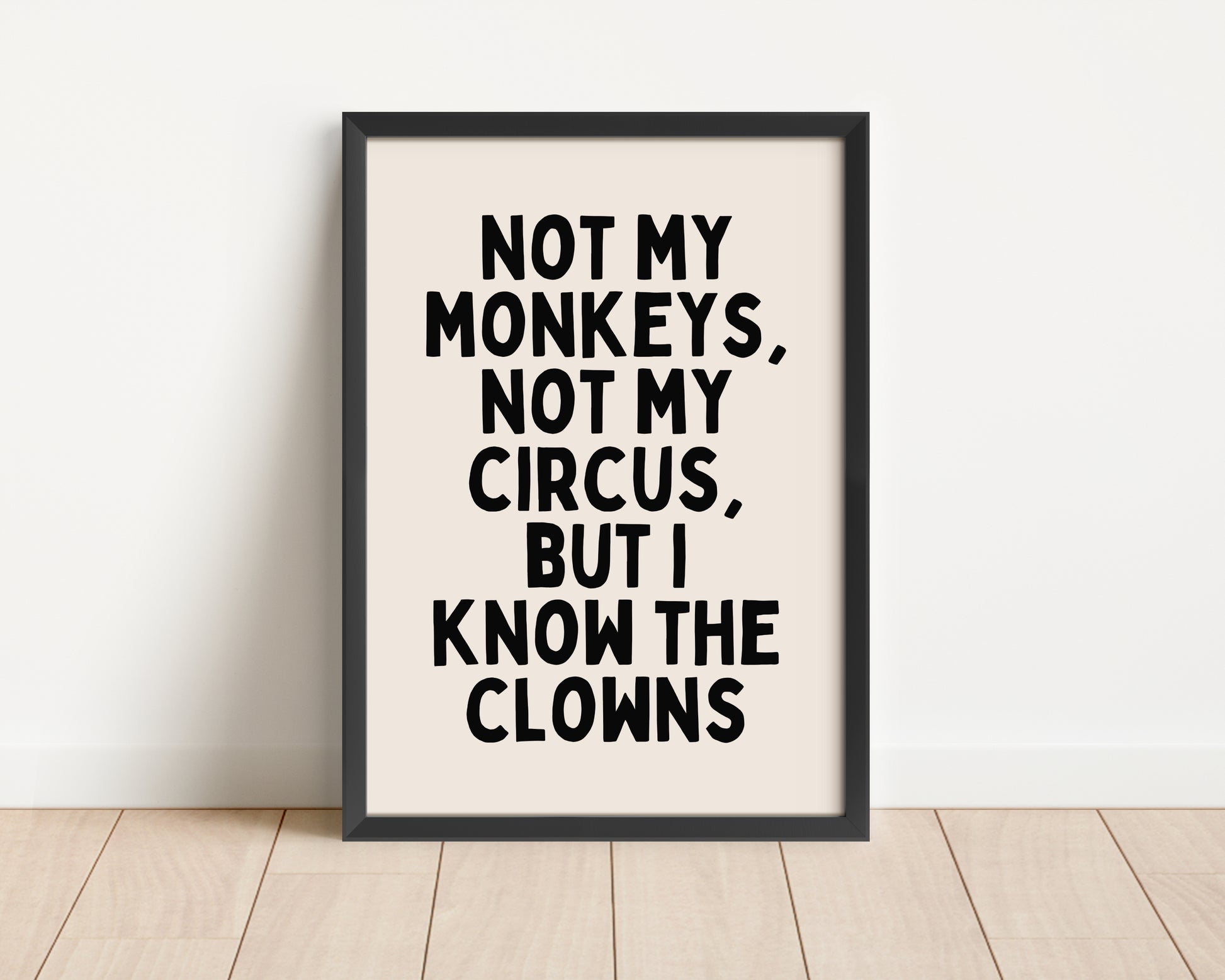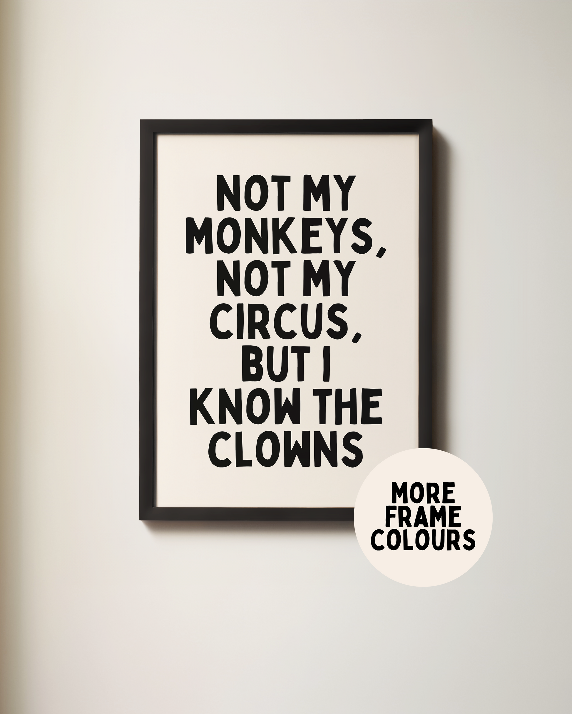 Framed | Not My Monkeys, Not My Circus, But I Know The Clowns | Black and Cream | Art Print