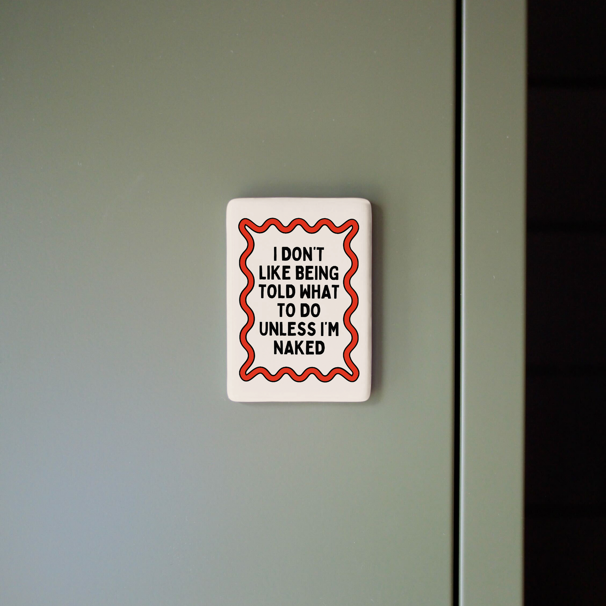 I Don't Like Being Told What To Do Unless I'm Naked | Ceramic Magnet