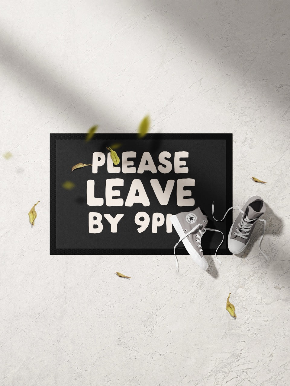 Please Leave By 9pm | Cream and Charcoal | Indoor Door Mat